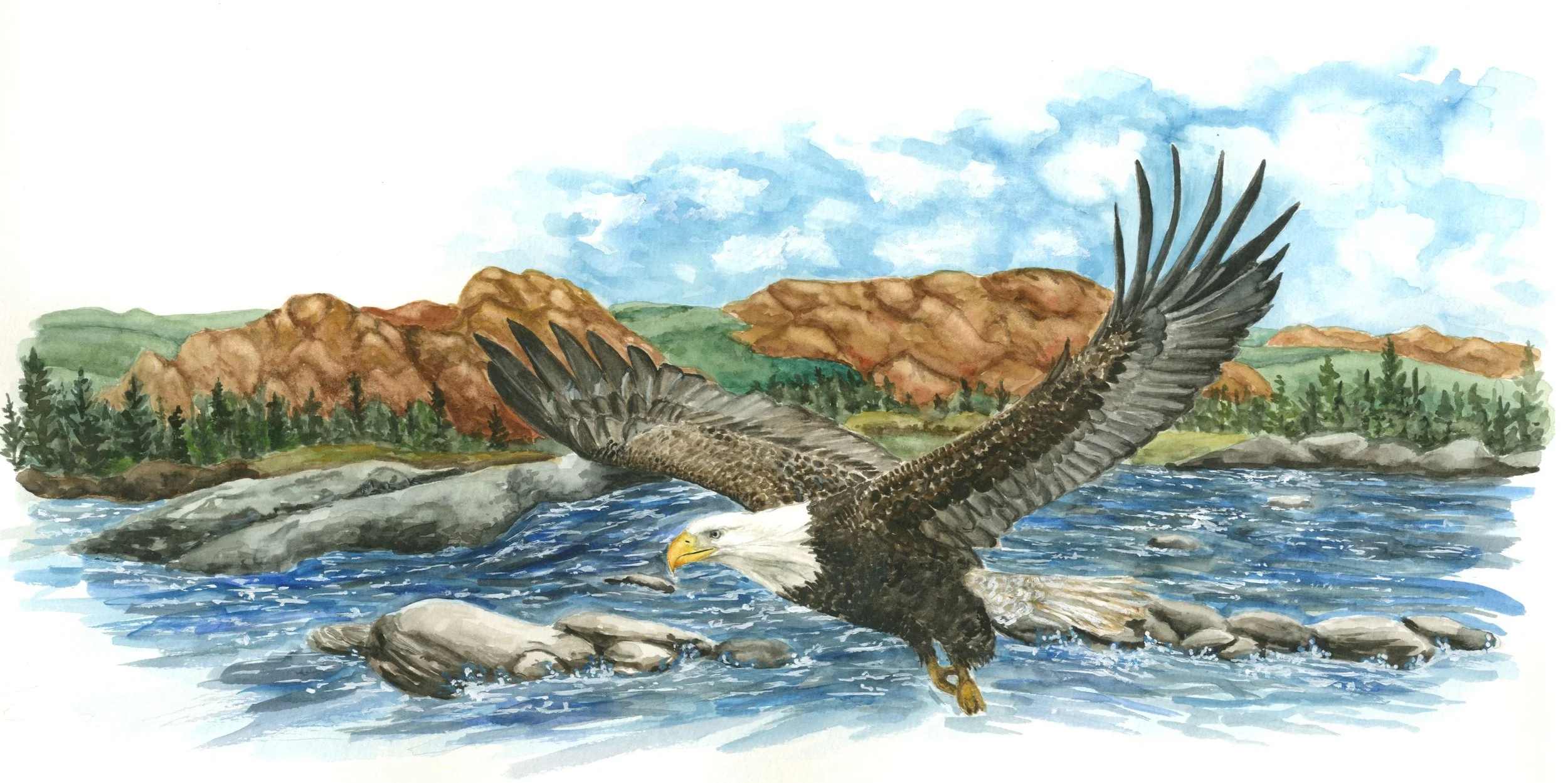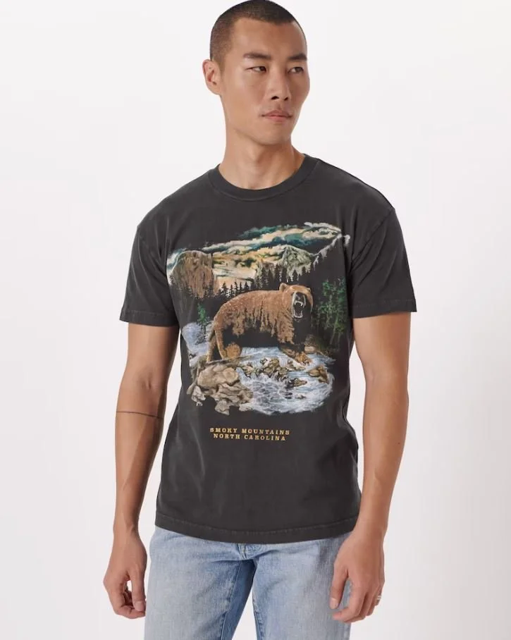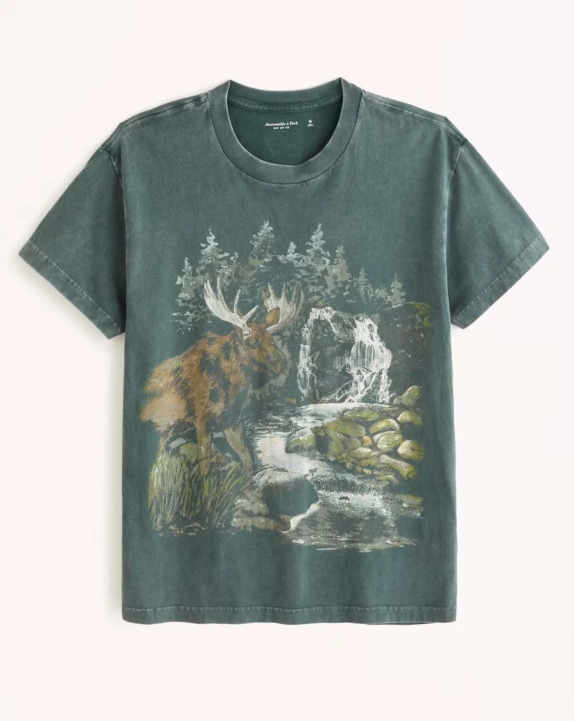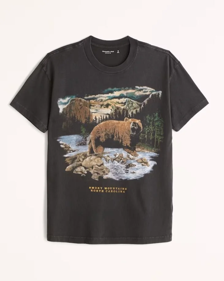 This was a collaboration with the Men’s Graphics team to paint original animal landscapes for graphic tees. I painted in watercolor, gouache and ink on paper, and the graphics team took it from there!